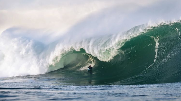 Lavernhe was lucky enough to get a jet ski ride with Portuguese big wave rider Nic von Rupp which allowed him to get in the lineup in short time, avoiding a very long and hard paddle of about 40-50 minutes.