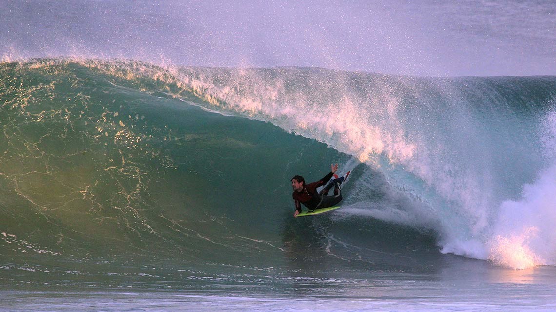 21/12/2015 – A foto, na realidade, serve apenas para enaltecer as boas ondas que fazem do sudoeste francês uma das melhores zonas do globo para a prática de desportos de ondas. Neste dia em particular, Alvaro, o autor da imagem, passou quatro horas com o seu canhão apontado aos tubos de Capbreton que ofereceram baguetes para todos os gostos e feitios. Não identificado parece querer tirar as medidas a mais um salão.