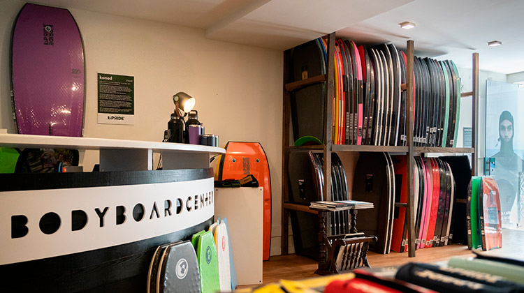A Bodyboard Center Carcavelos caminha a passos largos para ser uma loja multimarcas e, de acordo com Rafael Espíndola, gerente do espaço, “Já estamos a receber as novas pranchas da Morey, BZ, VS e NMD, além das novas coleções da Pride e Stealth”.