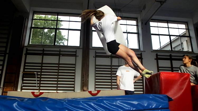 A descrição técnica da manobra, a validação com especialistas, a realização de sessões de treino organizadas em progressões e a aplicação de uma grelha de avaliação foram alguns dos passos inovadores seguidos neste estudo. As conclusões revelam que os treinos de trampolim adaptados à técnica do rolo têm um efeito facilitador na aprendizagem da manobra, quer a nível de rapidez de aprendizagem quer no nível técnico que os atletas atingem.